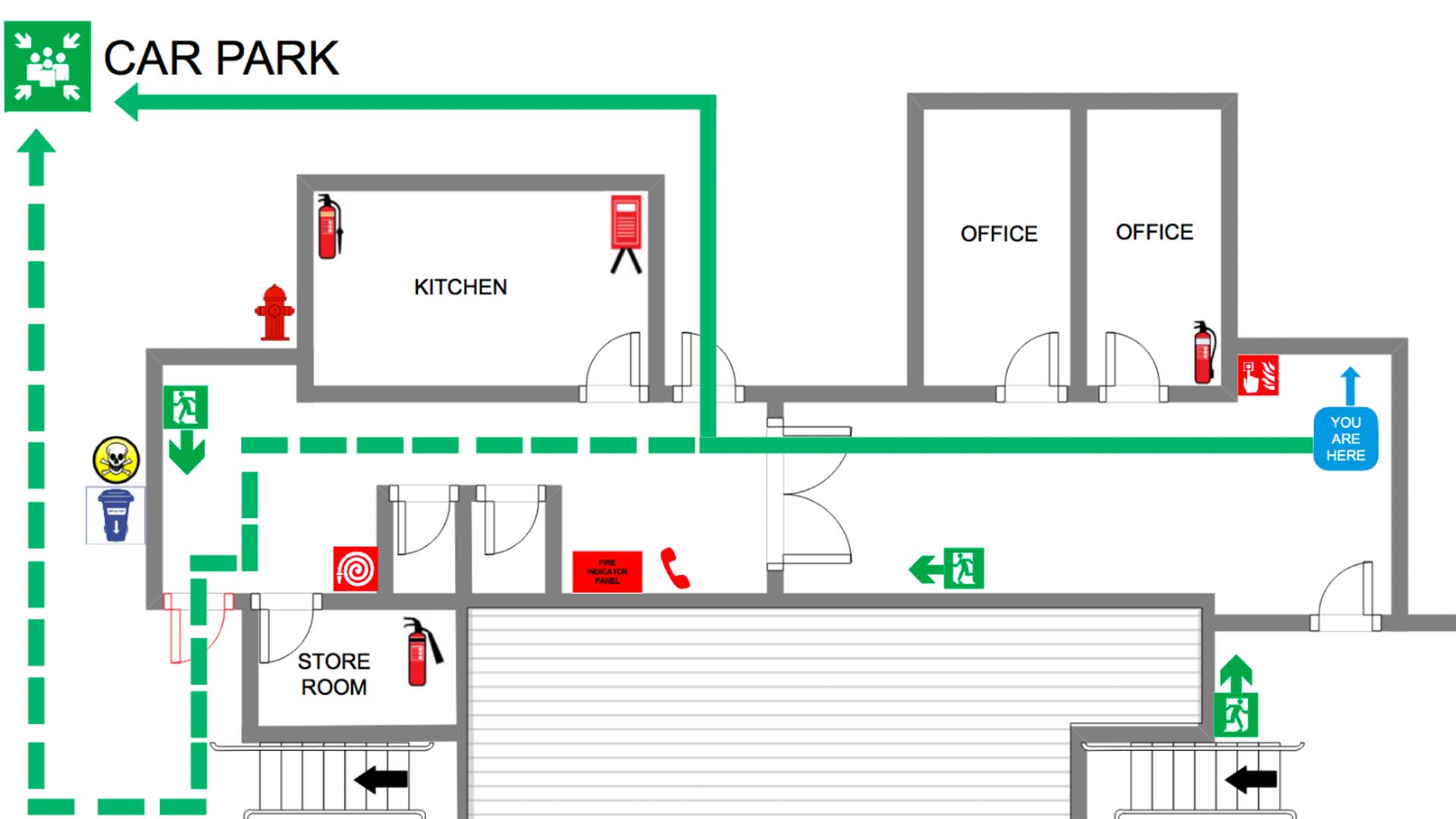 We will design your evacuation diagrams and send you a draft for approval/acceptance.